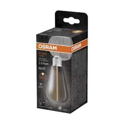 Cette ampoule Osram Vintage 1906 LED E27 Special Filament Claire Edison 2.2W 60lm - 818 Blanc Très Chaud | Équivalent 15W est l’alternative idéale pour la remplacement de votre ampoule classique de 15 W. La technologie LED intégrée vous offrira de nombreux avantages. Les ampoules à incandescence traditionnelles ont une durée de vie limitée. Cette alternative LED vous permettra de profiter d’un éclairage durable et fiable.