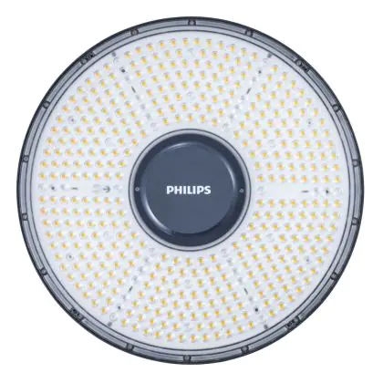 Le Philips Highbay LED CoreLine Aluminium Gris 210W 40000lm 55D - 840 Blanc Froid |IP66 est un puissant luminaire qui est très souvent utilisé pour l’éclairage industriel. Ce luminaire suspendu propage un puissant flux lumineux de 40000 Lm et offrant un excellent rendu de couleurs par rapport aux luminaires traditionnels. Cet high-bay LED est capable de résister aux différentes températures extrêmes que l’on peut retrouver dans les hangars, entrepôts ou autres halls industriels. La technologie LED Intégré sur ce luminaire permet de faire d’importantes économies d’énergie. En effet, l’high-bay propose une puissance de 210W pour un équivalent de 400W pour les appareils classiques et dispose d’une durée de vie pouvant aller jusqu’à 100000 heures.