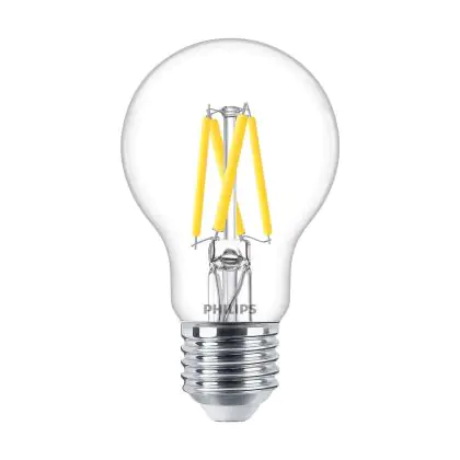 Cette ampoule Philips Master LED E27 Poire Filament Claire 3.4W 470lm - 922-927 Dim To Warm | Meilleur Rendu Des Couleurs - Dimmable - Équivalent 40W avec son efficacité lumineuse de lumen par watt vous permettra de profiter d’un éclairage de qualité. Avec sa durée de vie de 25000 heures, vous n’aurez pas à vous soucier de son remplacement avant quelques années.