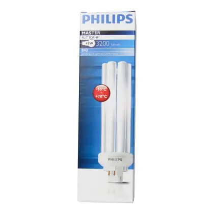 Cette ampoule Philips se caractérise par sa faible consommation d’énergie, elle est équipée de 4 broches. Cette lampe Philips MASTER PL-T Top 42W - 840 Blanc Froid | 4-Pins présente l’avantage de pouvoir diffuser la lumière de manière uniforme. De plus, cette lampe a une longue durée de vie et une utilisation de l'énergie efficace. De cette façon, cette lampe Philips fonctionnera pendant de nombreuses heures. Elle n’utilise que 42 W. Cette ampoule LED est produite par Philips, une marque réputée en matière d'éclairage. Vous êtes donc assuré de sa qualité.