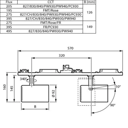 Description Philips Spot LED Sur Rail GreenSpace Evo Projecteur Blanc 39.8W 5400lm 41x80D - 830 Blanc Chaud
