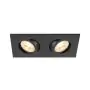 SLV New Tria 155 Spot Aluminium Noir Carré | Convient pour 2x GU10 est un spot LED encastrable. Ce luminaire est conçu pour un éclairage d’accentuation pour un usage domestique ou bien professionnel. Fixture Retrofit, ce spot LED SLV en Aluminium a besoin d’une place nécessaire de mm de largeur et mm de profondeur. Ce luminaire est compatible avec une ampoule GU10, il est important de faire attention si vous décidez de changer d’ampoule.