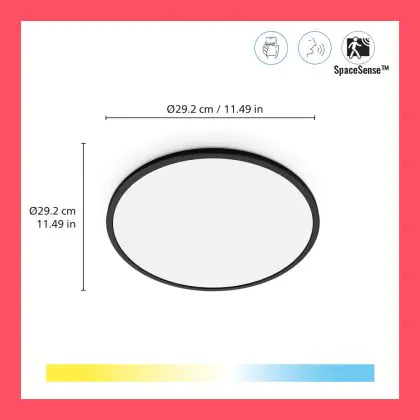 Description WiZ Smart LED Plafonnier SuperSlim Noir 16W 1300lm - 927-965 Variable Blanc | IP20 - Meilleur Rendu Des Couleurs - Wifi Dimmable